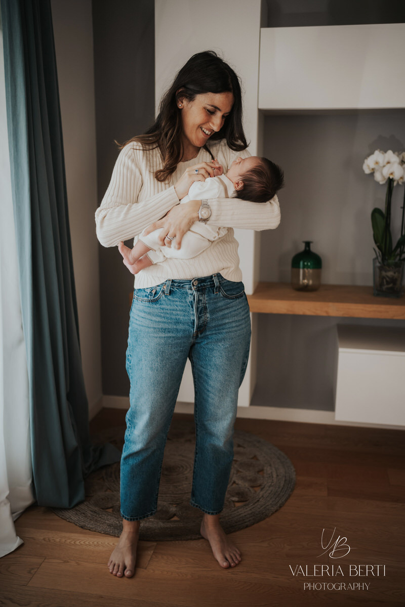 Non faccio fotografia di studio perché non la sento mia. Amo cogliere la bellezza nella realtà, senza costruzioni. Per me, la fotografia newborn lifestyle a domicilio è un modo per restituire alle famiglie la verità dei primi giorni con il loro bambino. Non serve uno sfondo perfetto: bastano un divano, un letto, un momento di tenerezza tra mamma e figlio. È lì che nasce la magia.