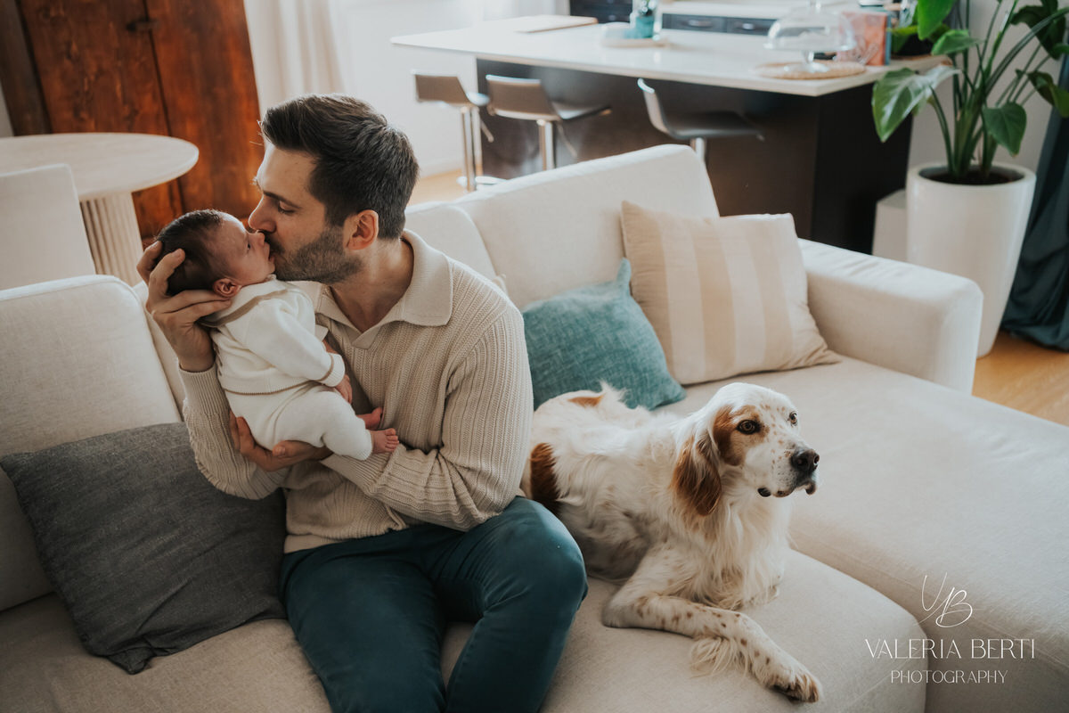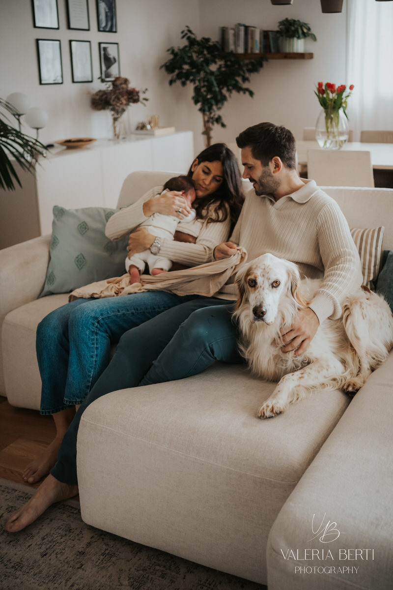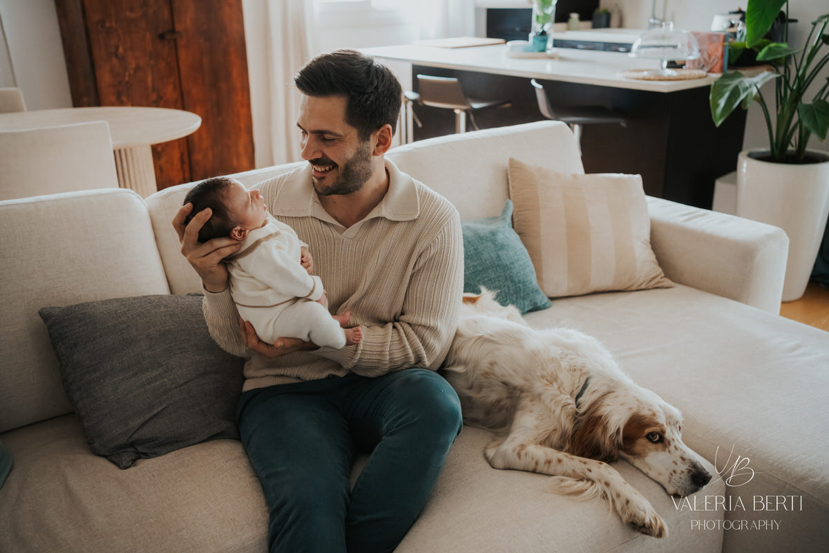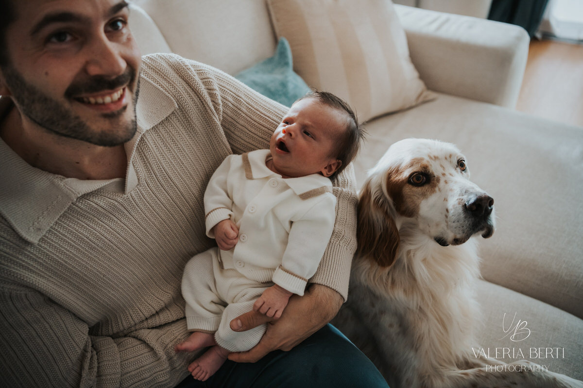 Ogni volta che entro nella casa di una nuova famiglia, so che sto per raccontare una storia unica. Ma quella di Edoardo, appena arrivato al mondo, con mamma Carolina, papà Luca e il dolcissimo setter Duca, mi ha toccato il cuore in modo speciale.